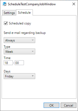 Name and configure the copying task you want in the respective tabs Settings and Schedule and click the OK button.
