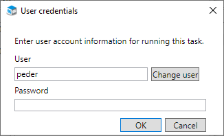 - Finally, you must enter the Password for the selected user who will run the task. Then click OK in this dialog.