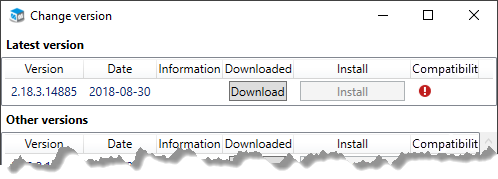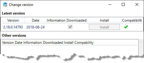 Click the Install button in order to install the version. You can also click the button Download if you only want to download a version. After the download, a filled checkbox shows that the version is downloaded. You should then click the Install button in order to install the version.