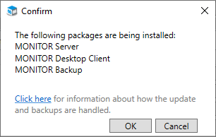 - The users can do a first startup of their Monitor ERP client after the update is completed. The clients will update automatically during the startup.