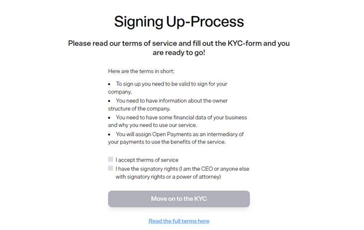 Click the KYC button to complete the mandatory know your customer verification where you are required to fill in details about your company. To comply with regulations surrounding payment services and for the prevention of money laundering, your company must complete the KYC verification for the payment services included in Bank integration. An authorized signatory of the organization or someone authorized to act on behalf of the company (such as a CEO or a head of finance) can fill out the KYC verification.