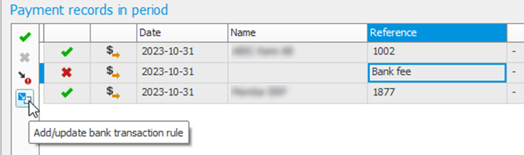 in the function menu, or via the Bank transaction rules tab in the Bank settings procedure.