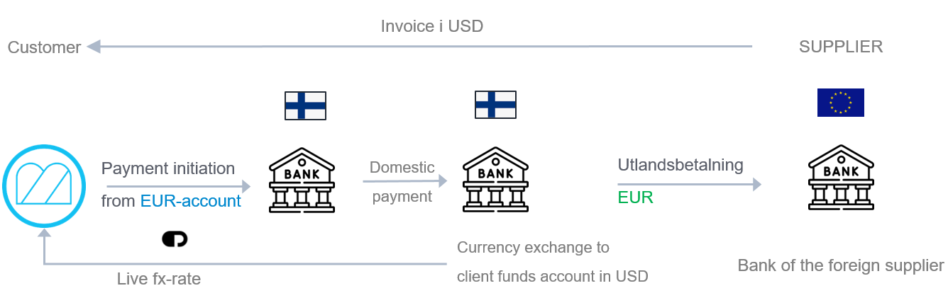 The Global Pay function is used to make international payments. You connect your account (in your local currency) to a function that makes payments in foreign currency via our partner Open Payments. When you make a payment it is converted to a foreign currency, just as with your regular bank, but with the help of a function that can make it a little cheaper. There are several benefits of this: