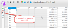 - To load all opening balances, you click on the button Load OB from previous year's CB